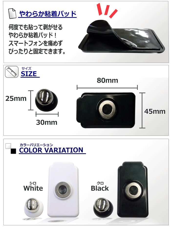 携帯側接着面積:80mm×45mm 使用可能機種: iPhone〜iPhone3G,iPhone3GS,iPhone4,iPhone4S,iPhone5,iPhone5S, iPhone5S Plus,iPhone6,iPhone6 Plus,iPhone6S,iPhone6S Plus, iPhone7,iPhone7 Plus,iPhone8,iPhone8 Plus,iPhone10, iPad mini,iPad mini2,iPad mini3,iPad mini4,iPod touch, 上記接着面積以上の大きさのあるすべてのAndroid機種, 上記接着面積以上の大きさのあるすべての携帯電話機種(ガラ携を含む) ※自動車側接着面は、傾斜45°以内でお勧めします。